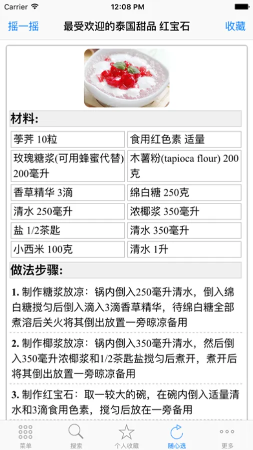 原生界面,完美适配。最简洁清新的甜点食谱大全,离线数据,全设备通用。一键收藏,摇一摇随机选择菜谱,支持全文搜索。