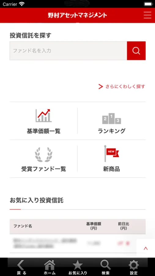 お気に入りの投資信託を20件まで登録することができ、お気に入り投資信託の基準価額を容易に確認できます。