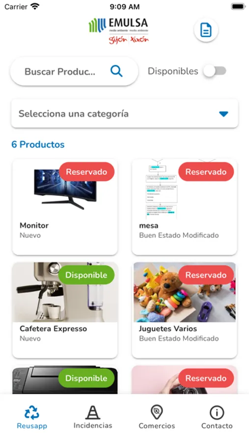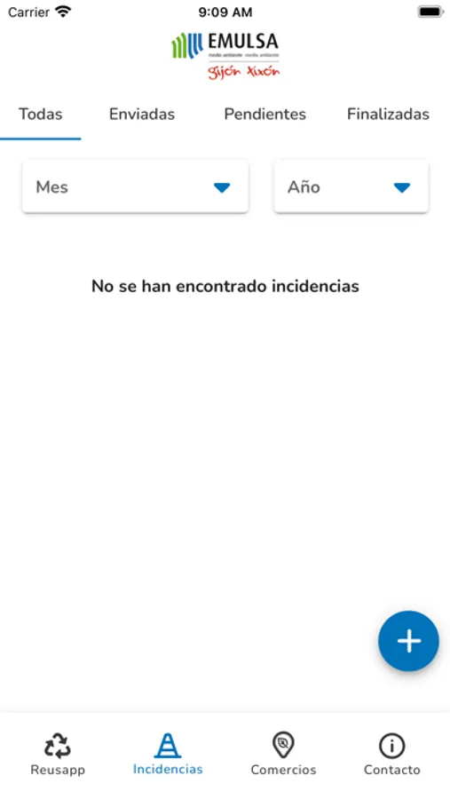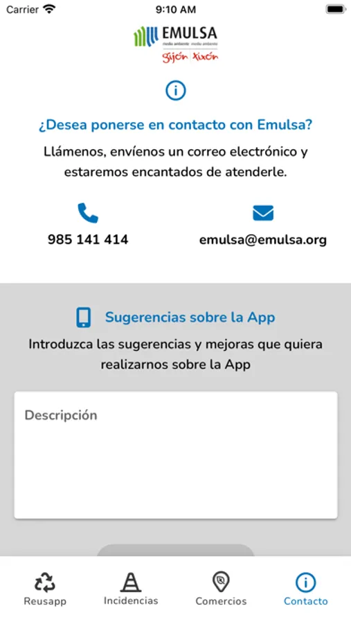 Aplicación de la Empresa Municipal de Servicios de Medio Ambiente Urbano del Ayuntamiento de Gijón (EMULSA) para el envío de incidencias y avisos desde dispositivos móviles.