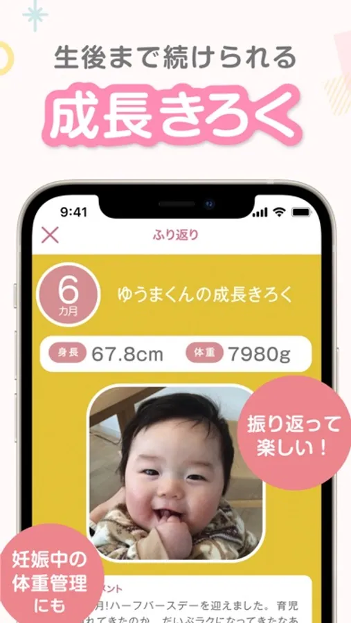 エコー写真など、妊娠中の大切な一瞬もアプリにカンタンに登録でき、"家族"の思い出をしっかり残せます。