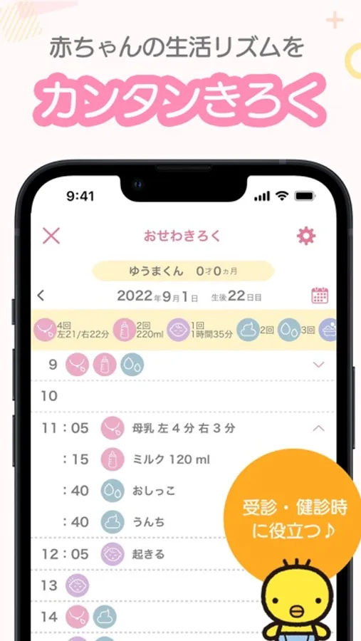赤ちゃんの生活リズムの把握や、受診・検診時にも役立ちます!