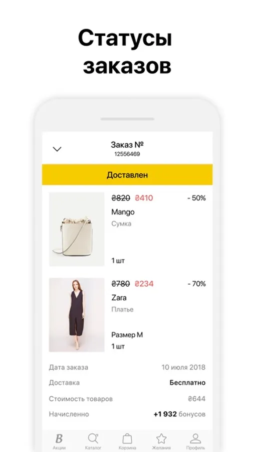 • мгновенное оповещение о распродажах, акциях и других сюрпризах от магазина.
