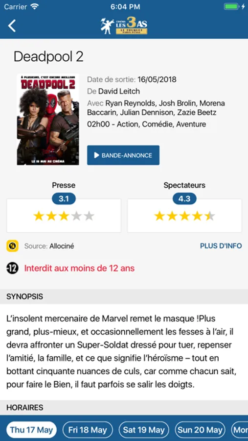 Retrouvez à chaque instant toute l’info de votre cinéma Les 3 A au Touquet sur votre iPhone ! Les films à l’affiche, les horaires des séances, les fiches films et les événements et infos pratiques de votre cinéma !