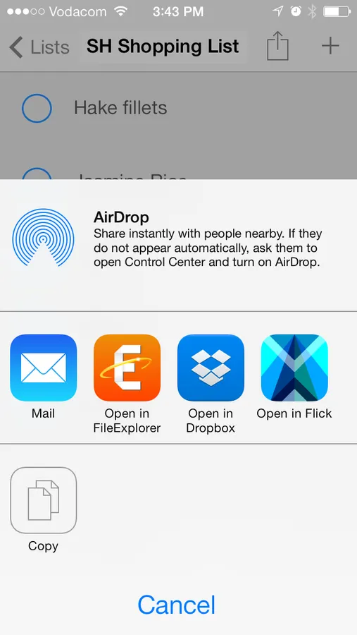 Share a list with someone else by simply sharing a file. They open the file and the list is shared! It's that simple, it's magic! When they make a change you receive a push notification of the change and your list is updated. Lists for your own devices are synchronized via iCloud.