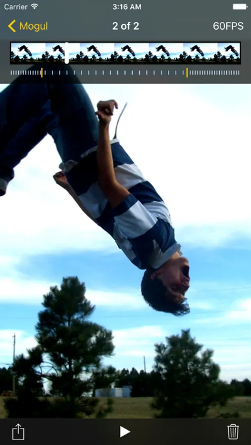 When you're done, select the portion you want to slow down, and that clip plays back smoothly at half speed. You can change which part is in slow motion anytime, and share it with your friends or save to camera roll.