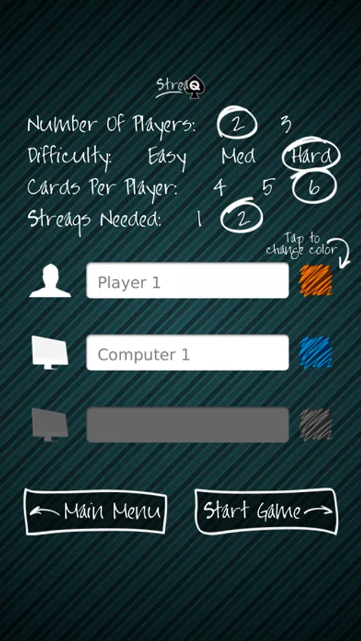 • Choose the number of Streaqs (sequence of five tiles in a row) needed to win