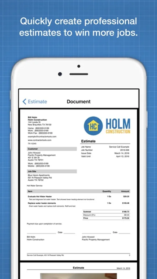 • Email a PDF estimate to the customer directly from your iPhone or iPad.