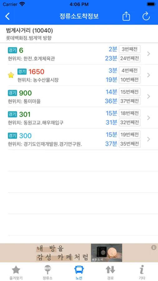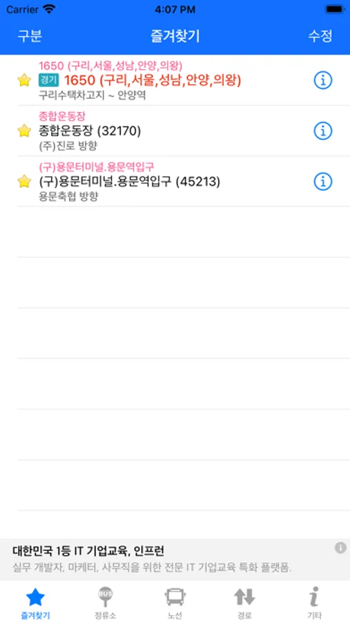 - 자주 이용하는 정류장 및 노선을 즐겨찾기로 등록