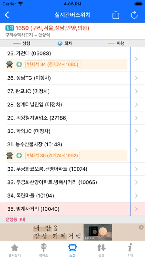 - 정류장 검색 및 버스 도착 시간과 현재 위치 제공