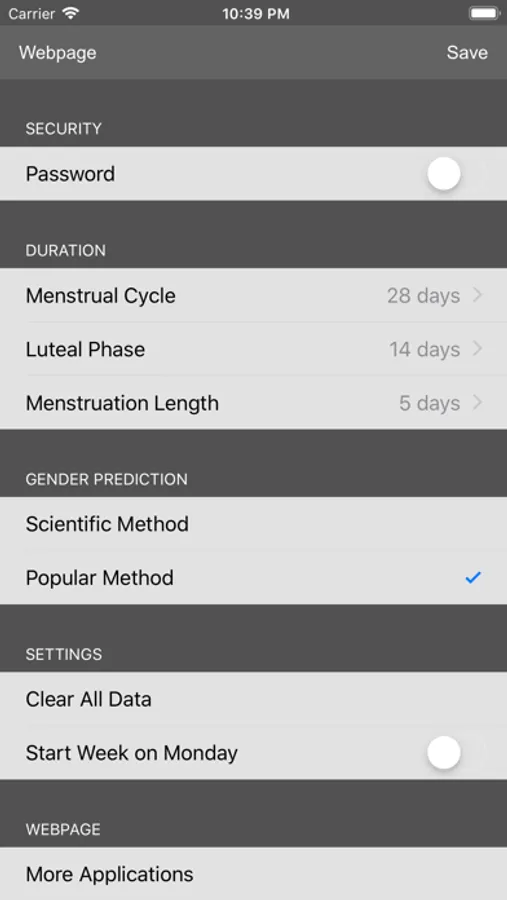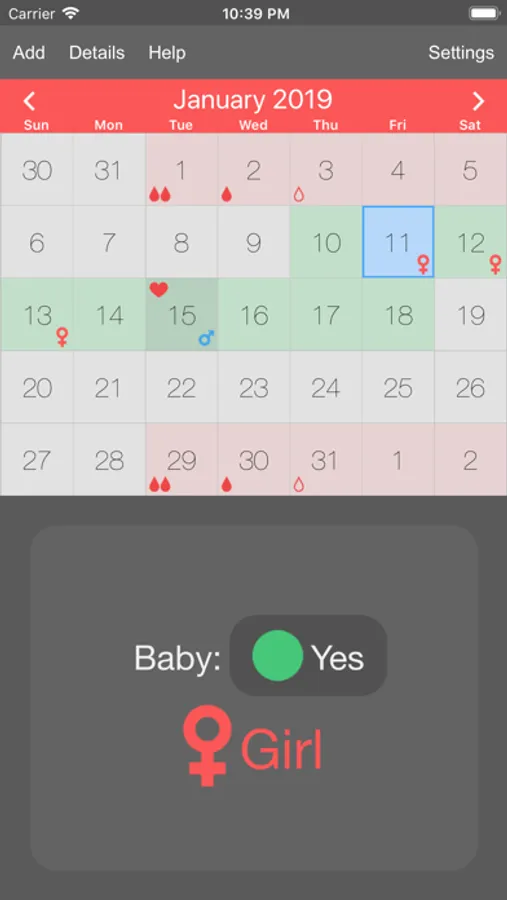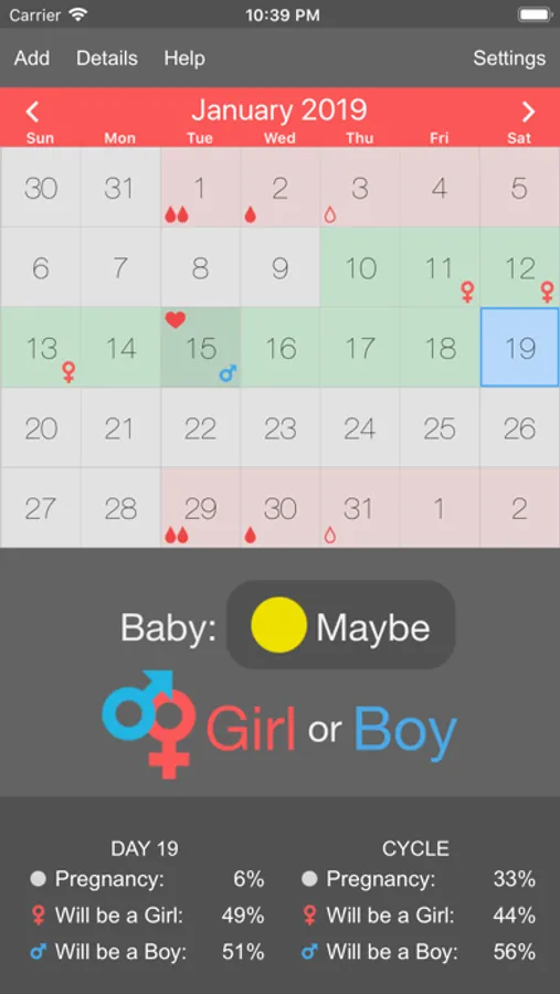 You can change the gender prediction method on the “Settings” screen. But remember that either gender prediction method shows only slightly higher chances of conceiving a girl or a boy and it never guarantees the result.