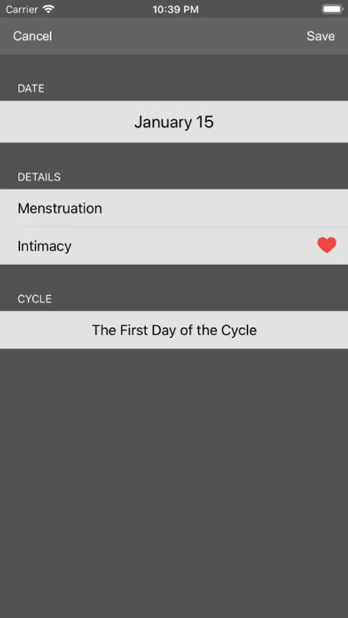 - Average length of the menstrual cycle (adjust it on the “Settings” screen).