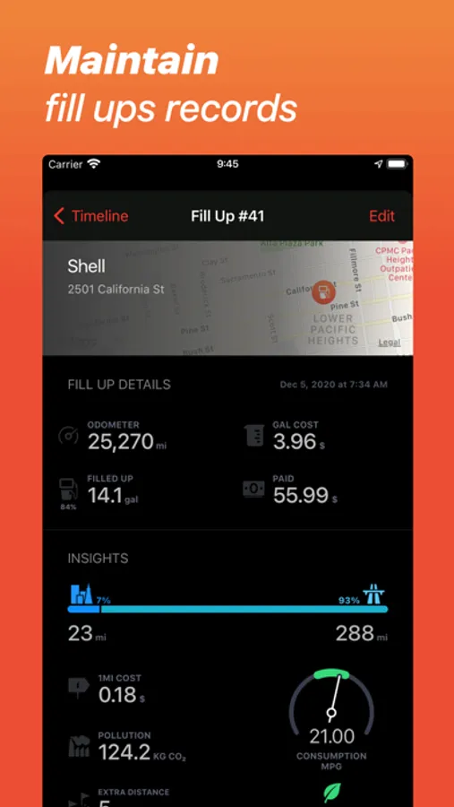 Whenever you're on the gas station to fill up the tank with fuel, Jerrycan will remind you to save fill-up details.