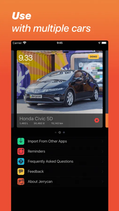 If you’re using any other fuel tracking app and tired of filling out numerous numbers, outdated and clumsy interface, you can easily switch to Jerrycan. Simply import your data to Jerrycan app.