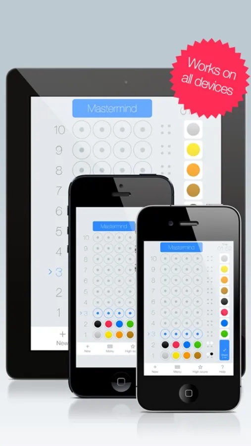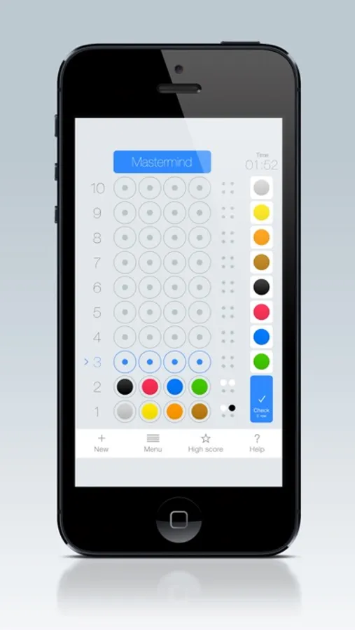 Mastermind for iOS is a classic puzzle game. The goal is to guess the hidden color combinations / code. Your opponent (iPhone, iPad or iPod) creates a combination of up to four colors and hides them at the top of the game board. Your task is to try out different color combinations until you match the hidden code.