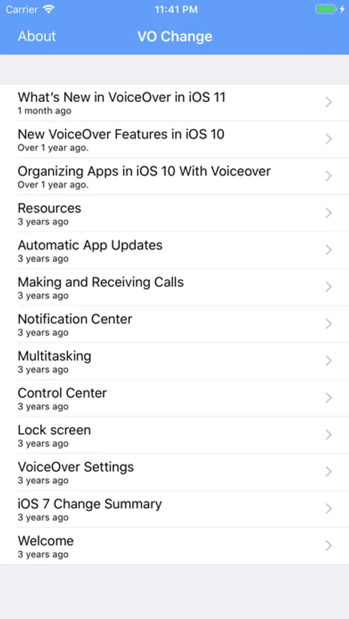 VO Change is designed to help early adopters of new iOS versions learn the new features of the VoiceOver screen reader. The app also discusses new iOS features and how to access them with VoiceOver. For more information, please visit http://www.iaccessibility.net/vo-change