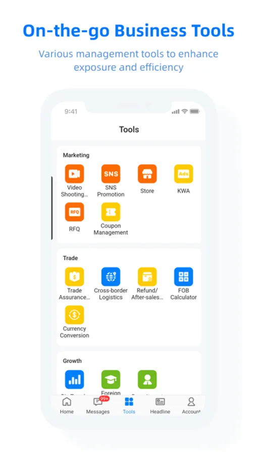√ Provides services for businesses on Alibaba.com, and is an essential app for any e-commerce business