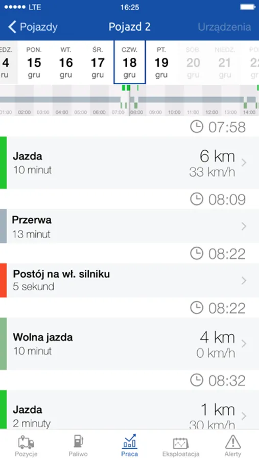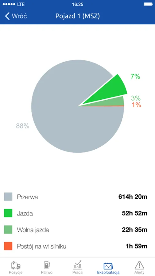 - aktualny status pojazdu (jazda, postój na włączonym silniku, przerwa)