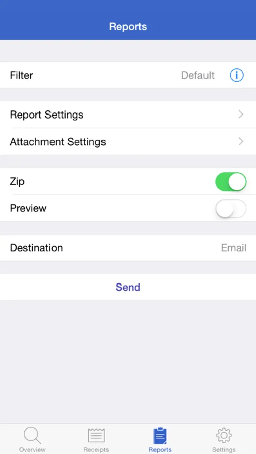 Generate Excel, PDF, HTML, and CSV reports with attachments. Optionally embed photos and drawings in PDF reports. Specify report names and add custom headers. Select which receipt fields to include and sort/group receipts by any field. Share reports using a variety of options including Box, CloudApp, Dropbox, Evernote, and Google Drive.