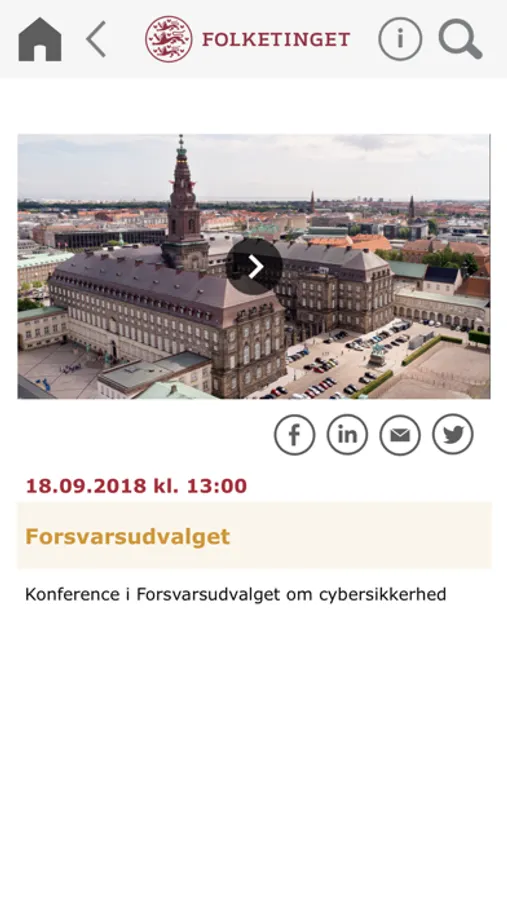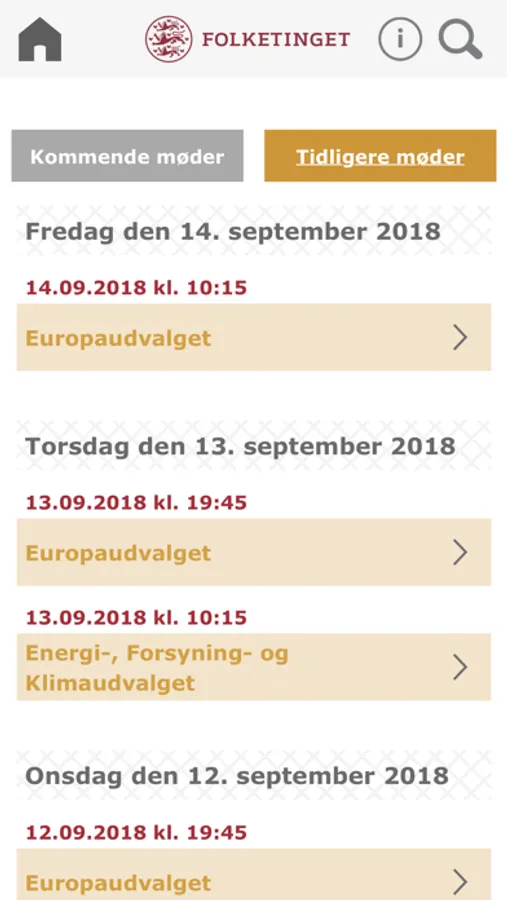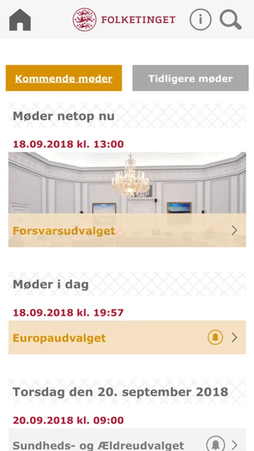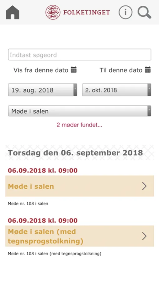 Folketingets tv-app giver dig en samlet oversigt over alle møder i Folketinget. Du kan se kommende, direkte og arkiverede møder i Folketingssalen, alle åbne samråd og høringer, når det passer dig. Du kan bruge påmindelsesfunktionen og modtage en notifikation ved det tidspunkt, mødet forventeligt begynder. Du kan søge efter møder på tværs af alle kommende, direkte og arkiverede møder.