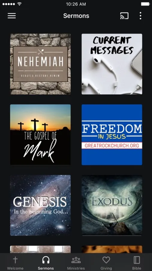 The Great Rock Church app was developed with Subsplash App Platform.