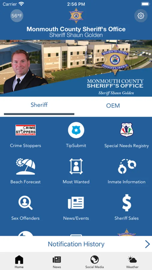 The Monmouth County Sheriff’s Office Application is an interactive application that will facilitate information to the general public in real-time. Such information will include, but not limited to contact information, news alerts, emergency alerts, local weather, event calendar, inmate search, Sheriff Sales and most wanted. By empowering people through technology, the Monmouth County Sheriff’s Office will be able to better protect our county.