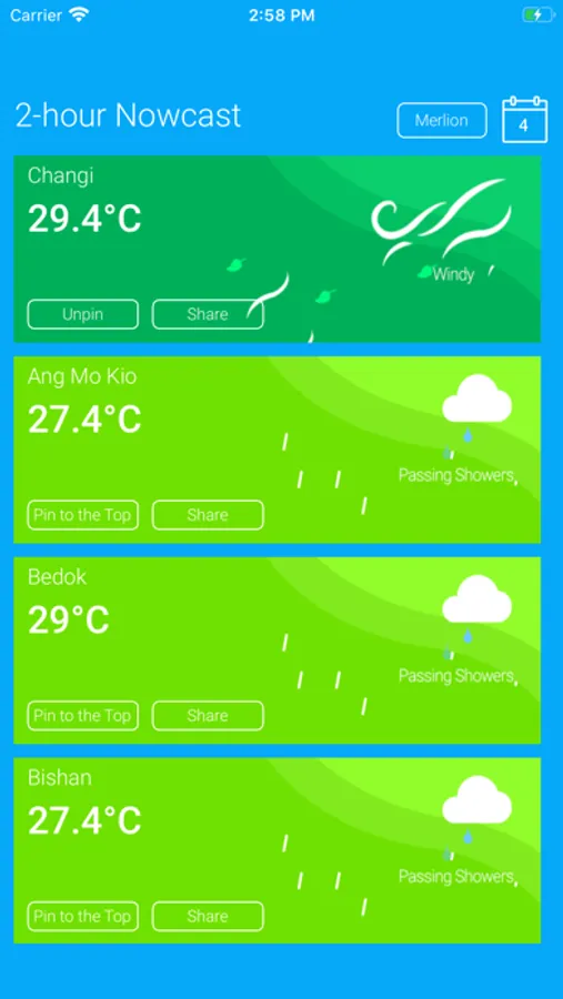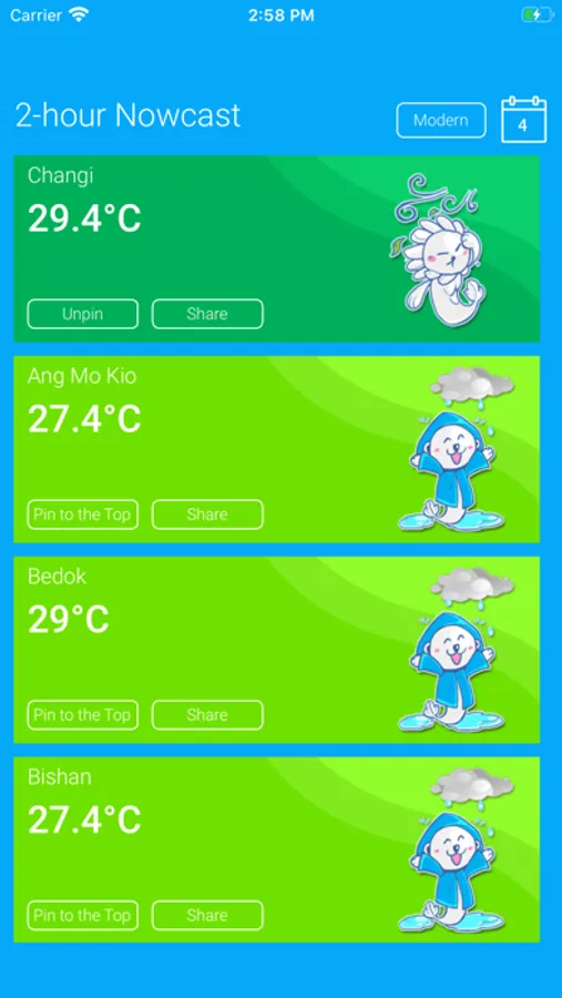 MyWeather@SG is a unique weather app that presents the 2 hours weather forecast and 4 days outlook in Singapore in a lighthearted manner.