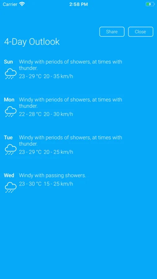 - 4 Day Weather Outlook so that you can always plan ahead,