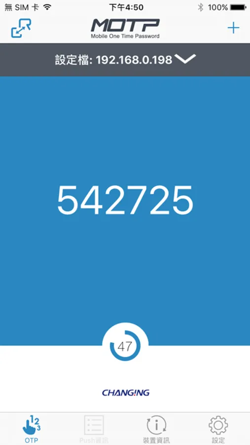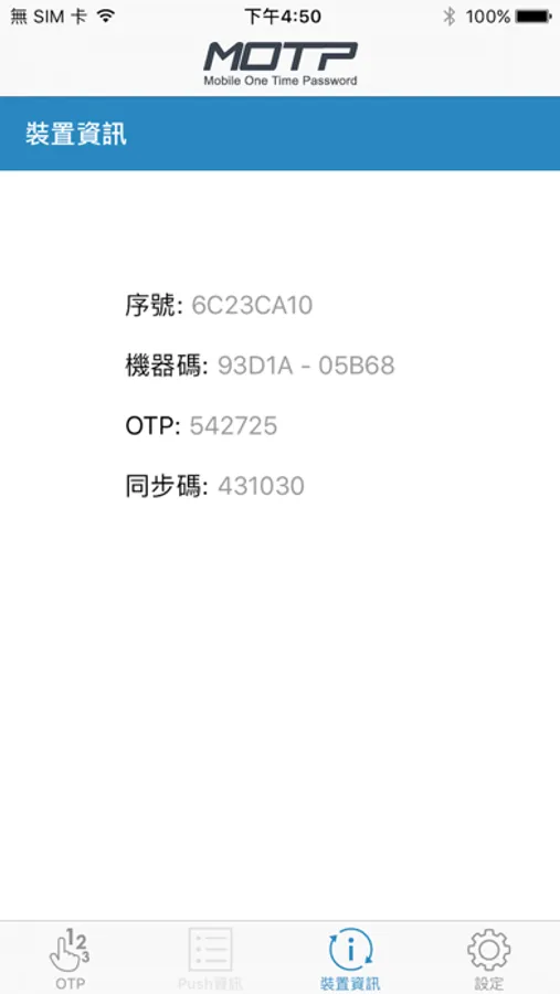 若您要體驗MOTP,請連到下列網址 http://motp.chg.com.tw/ 或直接輸入測試用初始金鑰00000000