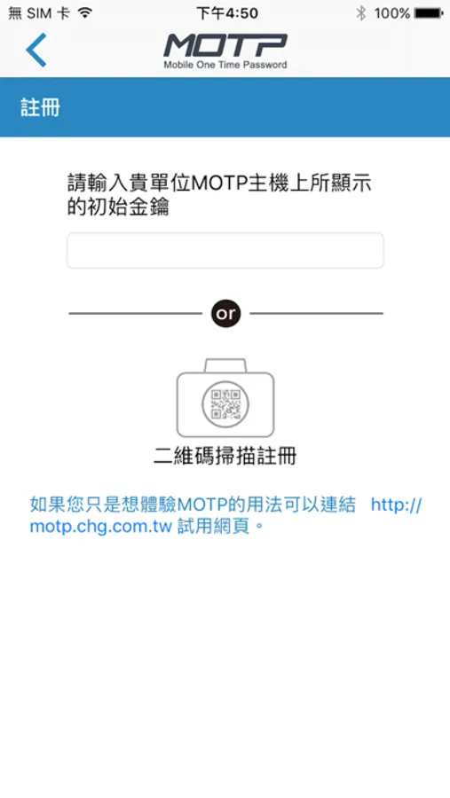 2.到貴單位的MOTP註冊網頁取得初始金鑰