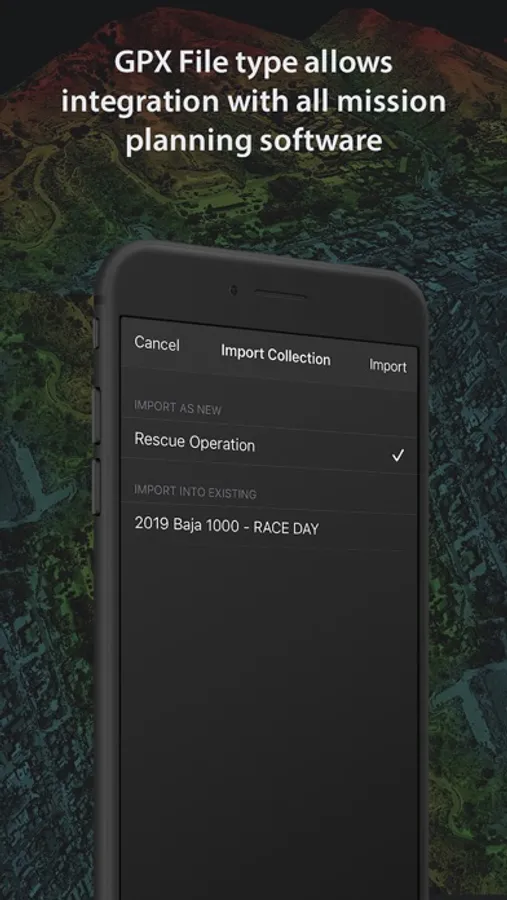• Create or Import Collections of Routes, Tracks, and Markers for different events. (Baja 1000 2019, Mining Expedition 2020)