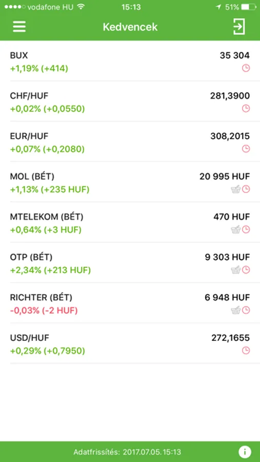 - Aktuális értékpapír árfolyamok (belépést követően tőzsdei értékpapírok esetében valós idejű adatok)