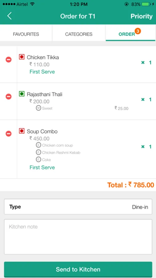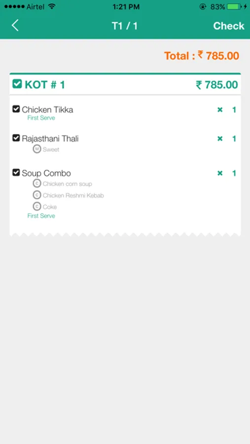 This restaurant app enables table listing, order customization with food preferences, processing KOT instantly to kitchen, merge & split orders, pre-defined discounts on bill by syncing with backend POS server.