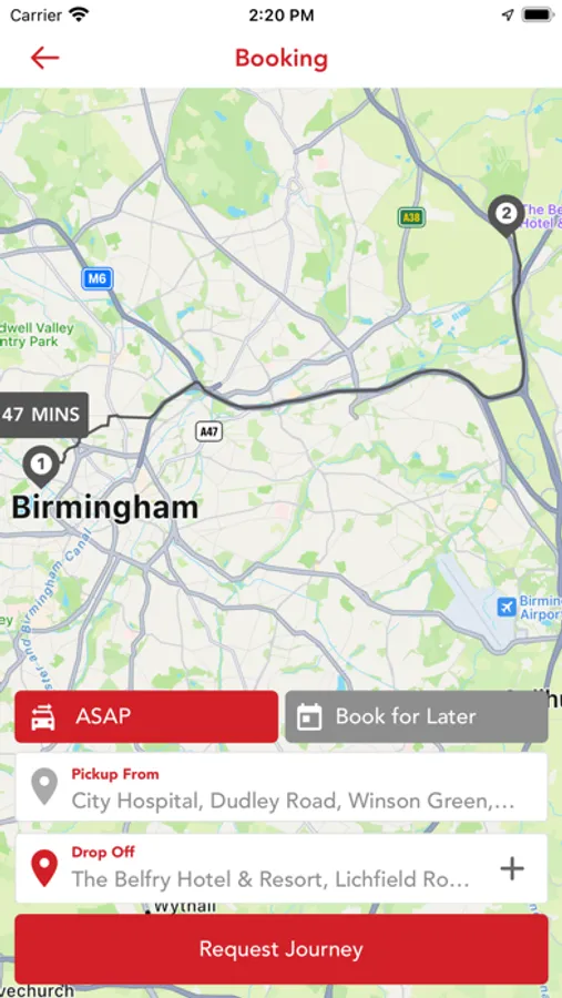 This App has been designed to be used for journeys within a 40 mile radius of Central Birmingham.