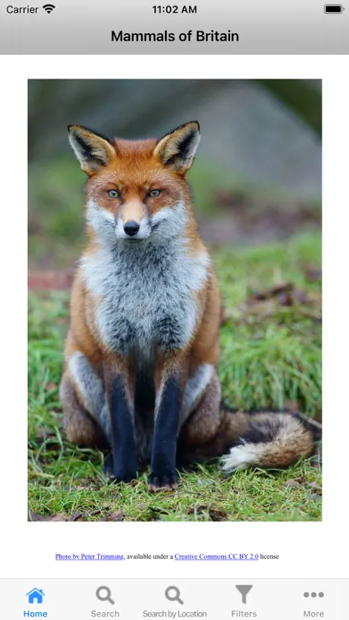 Includes Search by Location feature which enables you to see only the mammals in your area and a Filters function which allows you to choose filters by combinations of size, colour and habitat.