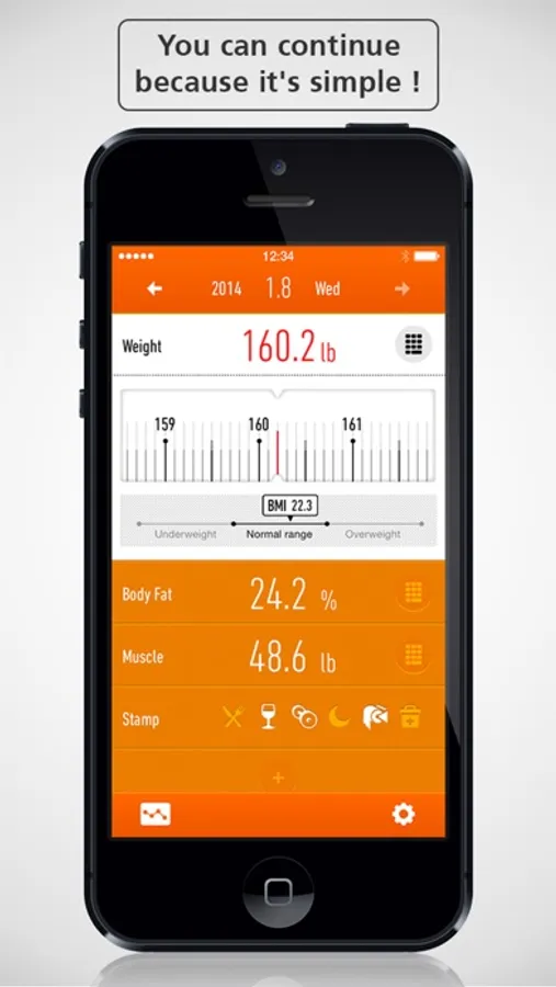 You can change the color to suit your tastes or your mood for that day, from five different colors: black, white, orange, green and pink. You can tackle your weight recording any time with a fresh attitude.