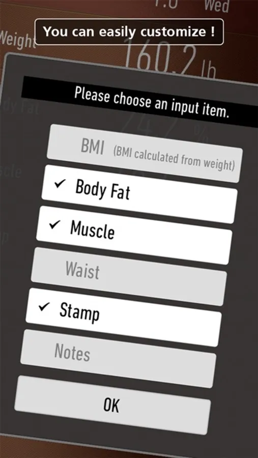 With RecStyle you can add items indispensible for dieting, such as 'weight' and 'body fat', and you can also manage your 'muscle mass', useful for muscle training.