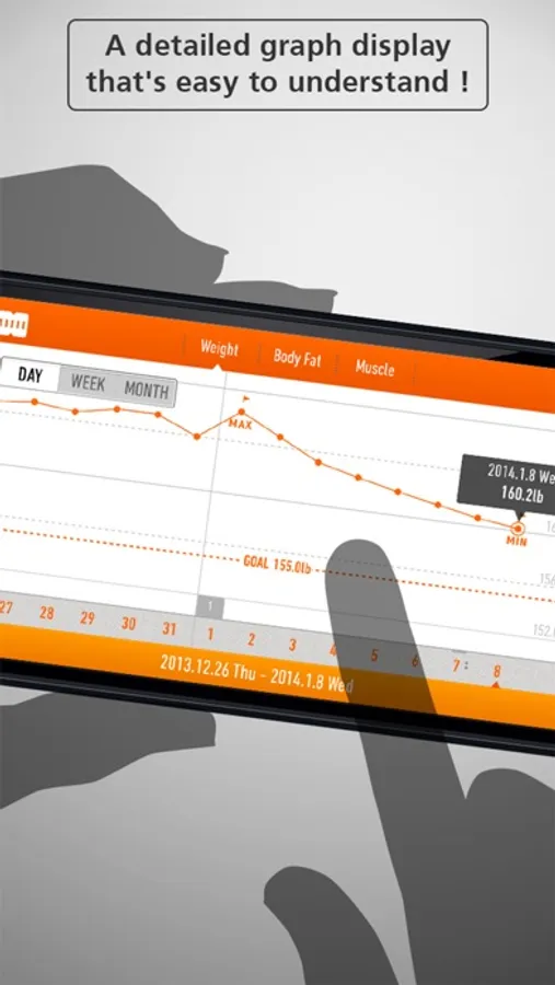 Its basic functionality is also complete, such as a 'lock function' to protect the important weight management data that you don't want other people to know about, a 'target value display' on the graph display (it is possible to set the target value for 'weight', 'body fat', 'muscle mass' and 'waist') and much more.