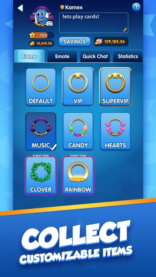 You can choose which Coin stake to play with. The higher the bet, the higher the reward, if you win of course. Play smart and you'll be the winner! Don't forget, we offer free Coins every few hours in CardParty, so don't forget to claim them! More Coins means more games.