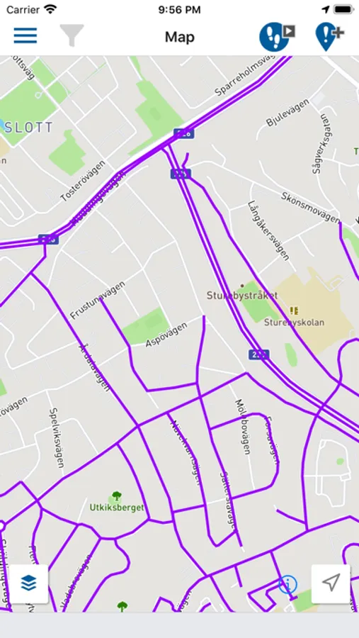With the tracking feature enabled a trace line is drawn on the map, showing where the inspector has been during the inspection. This gives good overview of what has been inspected and what remains to do.