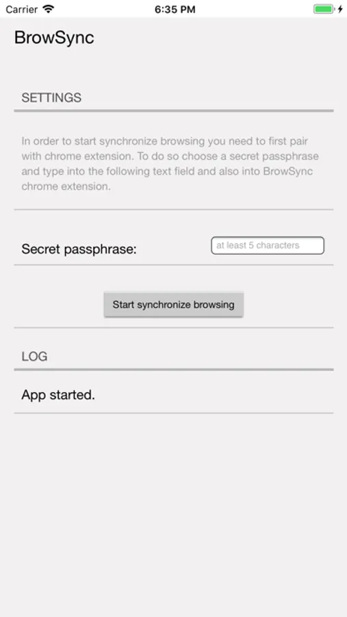 - choose a secret passphrase which will be used to pair your extension with app