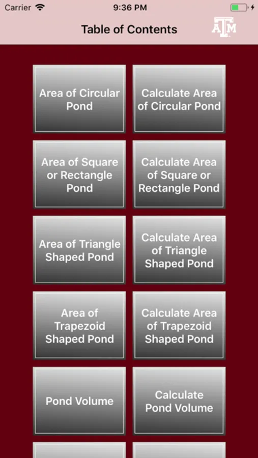 PondCalc is a comprehensive tool for recreational pond users as well as aquaculture producers. One of the most common problems in pond management is over-estimation of pond size. This tool allows the user to quickly and easily calculate the surface area of any shaped pond and then calculate the number of acre feet, all without having to do any math. These calculations allow the user to determine accurate pond area and volume for the application of chemical treatments and herbicides.