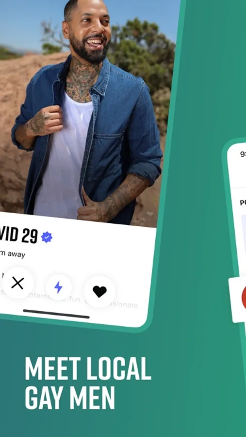 • Browse – check out hot gay men nearby by Swiping Right to “like” a guy and Swiping Left to “pass”.