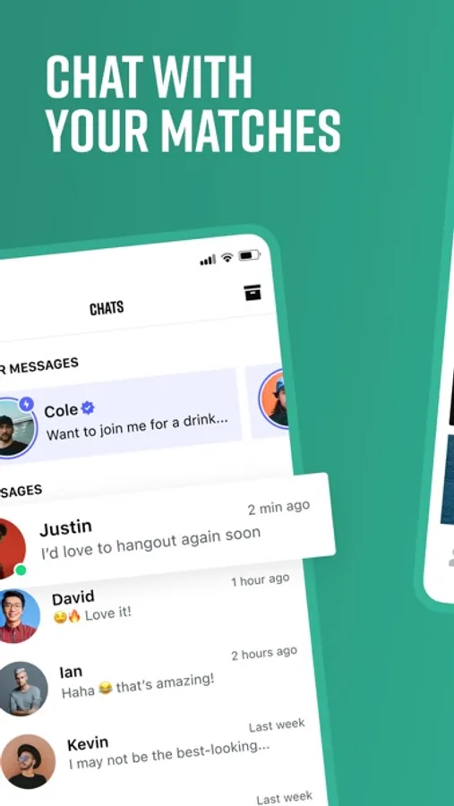 • Chat – if you match with someone, head to the chat section and strike up a conversation immediately for free! Send pics or videos that vanish after a couple of seconds. GIFs and Stickers are at your disposal, too!
