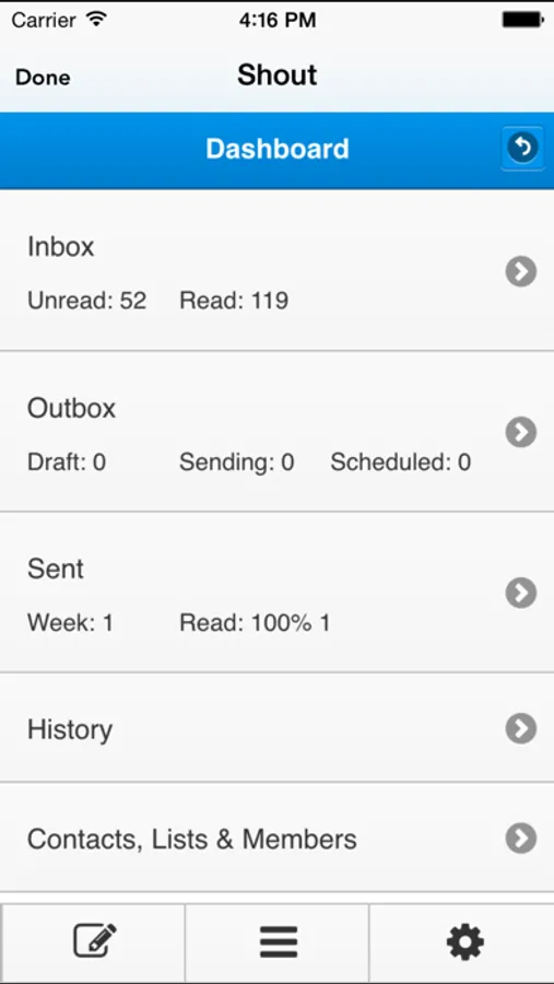GoTools by Proximiti is a set of information tools for on the go individuals, particularly network marketing professionals. Tools include Shout!, a multimedia messaging system that lets individuals rapidly communicate with their hierarchy and with custom lists of individuals. To support Shout!, it also includes automatic synchronization between the device's contacts and the Shout! Address book, and MyLibrary to store media assets obtained from the device and elsewhere. It also contains an organization level phone book, bulletin board, calendar, push notifications, and web links. Organization level information can only be modified by the administrator. The application then provides convenient, read-only access to that information.