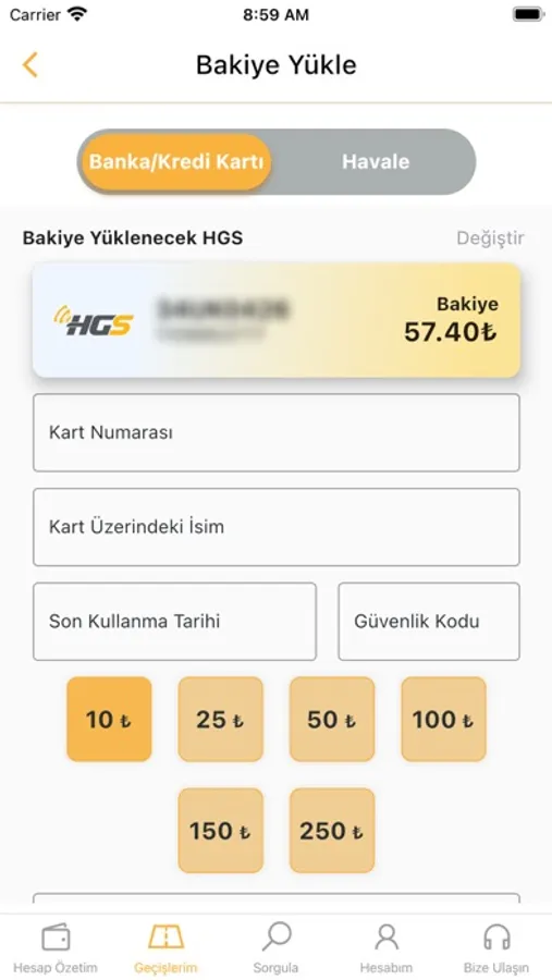 It is now very easy to load credits to your HGS with iPhone! With this application, your plate number and T.C. You can view the balance of all your HGS products by using your ID number, tax number or HGS ticket number, and you can top up easily and quickly with your credit card.