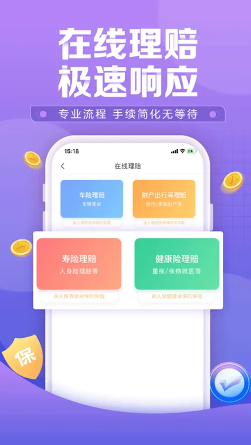 理赔服务:提供在线报案、理赔进度查询,在线7*24小时智能+人工咨询服务。
