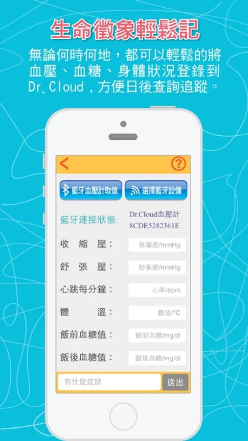 Dr. Cloud可以管理您的生理資訊,能夠自動判斷數值與產生圖表,讓您以簡單的方式了解量測狀況。
