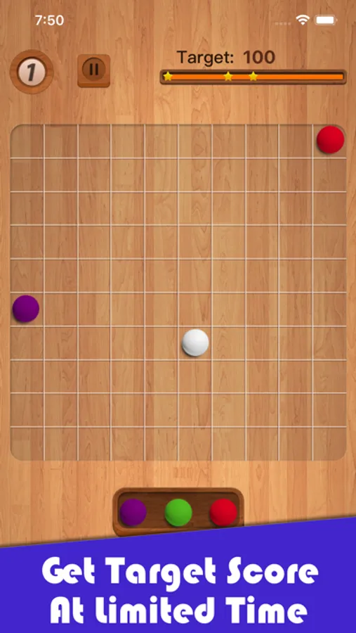 On each turn, three tiles randomly chosen out of seven colors are added to the board. The next three balls are always shown underneath the board.
