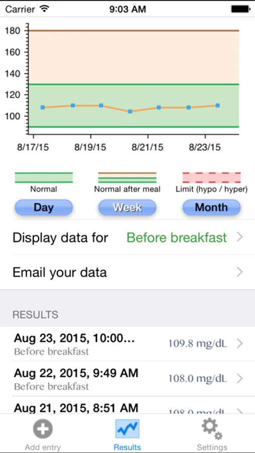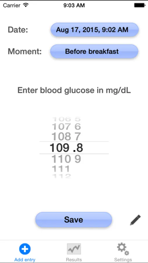 In the full version (available as in-app purchase) you can also track the amount of insulin units, add notes, track measurements for multiple users, and export (email) the results.