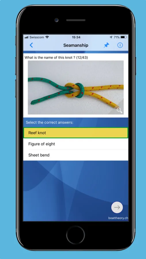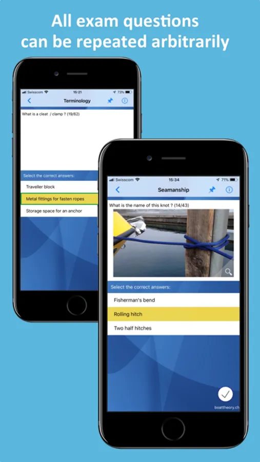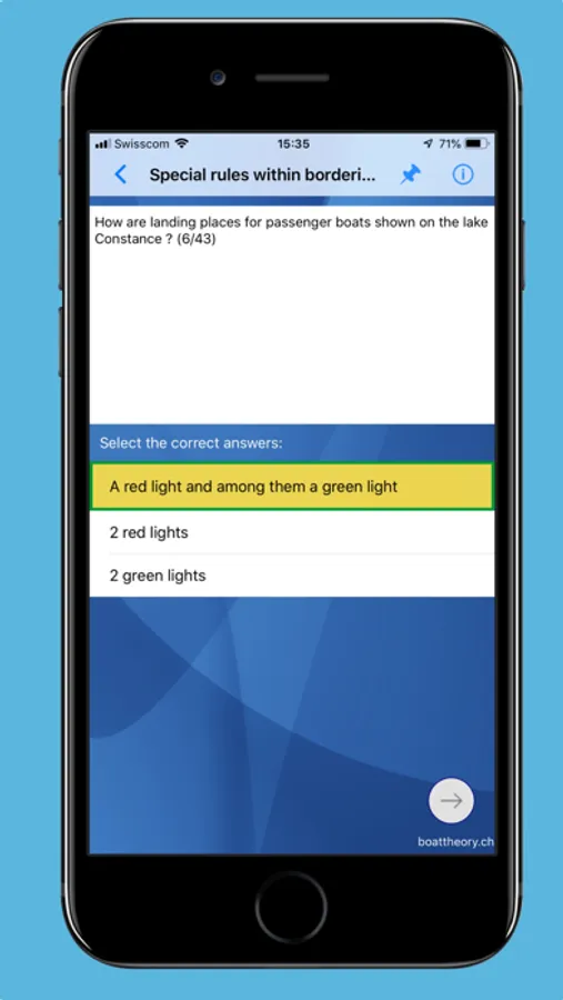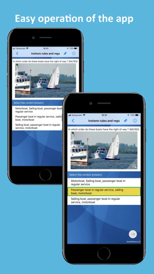 • The way questions are put on App boattheory.ch is very close to the way they are at the official exam.